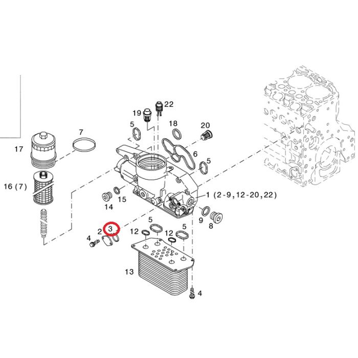 Joint de support refroidisseur moteur TCD 6.1, TCD2012, TCD2013, BF6M1013EC, BF6M2012C, TCD 6.1 L06 4V 2005/13/EG Stufe 4 / EPA 4f 910.490, TCD 6.1 L06 4V 2005/13/EG Stufe 3b / EPA 4i 910.490, TCD 2012 L06 4V 910.490, TCD 6.1 L06 4V 2005/13/EG Stufe 3b / EPA 4i 910.490