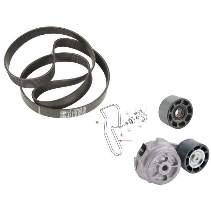 Kit courroie et galet tendeur pompe à eau moteur John-Deere 6068TRT tracteur Renault Arès 610, 620, 630, 640, 616, 656, 696, 617, 657, 697, Axion 810, 820, 830, 840, 850, 8PK 1940HD