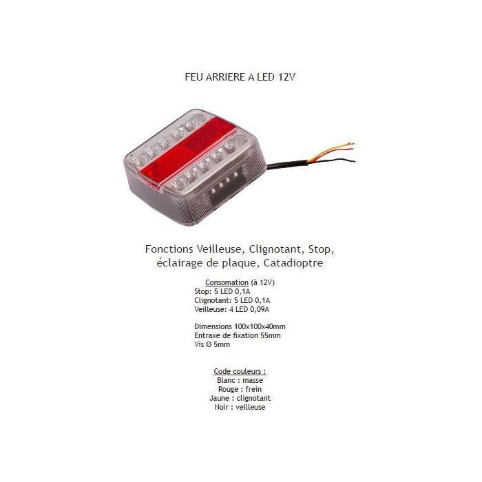 Fonctions Veilleuse, Clignotant, Stop, éclairage de plaque, Catadioptre.