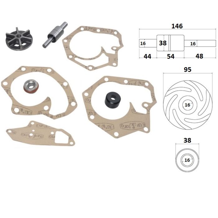 Kit réparation pompe à eau tracteur John-Deere 830, 930, 1020, 1120, 1350, 1550, 1630, 1750, 1830, 1850, 1950, 2020, 2030, 2120, 2130, 3100, 3110, 3200, 3210, 3300, 3310, 3400, 3410, 5200, 5300, 5310, 5400, 5410