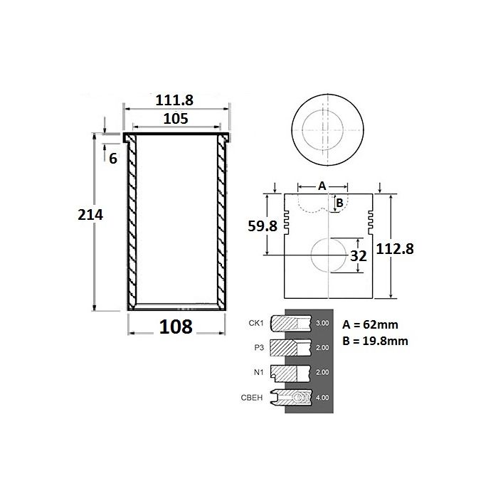 - 6 Chemise sèche alésage 105 mm hauteur total 214 mm