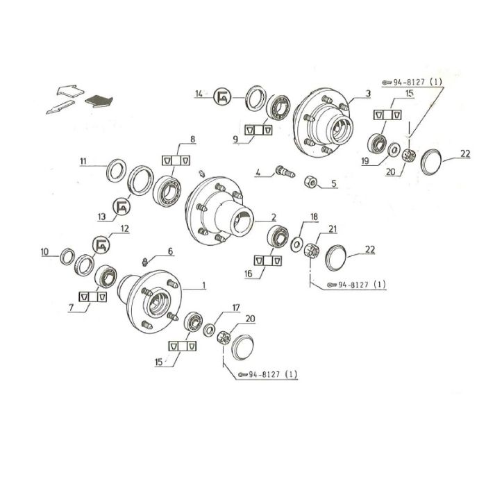 Kit roulement de roue essieu avant tracteur Renault 351M, 421, 421M, 461, 461M, 461S, 551, 551S, 651, 651S, 751, 751S, 851, 851S