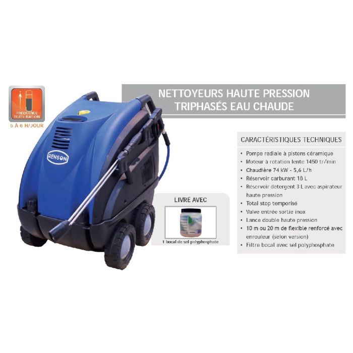 Laveur haute pression eau chaude 230Bars, 900L/H, 380V Renson UR
