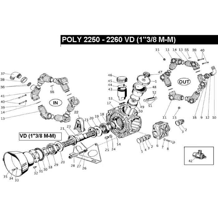 Membrane caoutchouc pour pompe BERTOLINI Poly 2116, Poly 2136, Poly 2180, Poly 2210, Poly 2240, Poly 2250, Poly 2260, Poly 2300