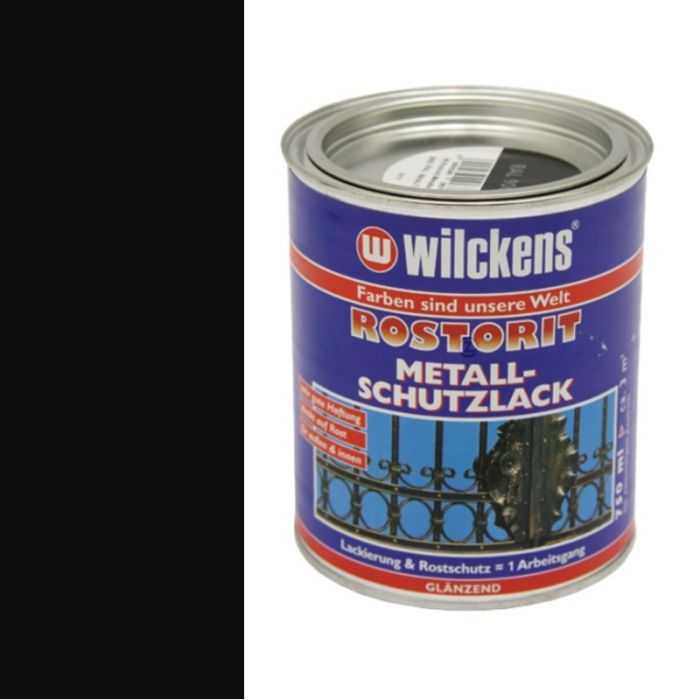 Laque de protection spéciale anti-rouille et finition 2 en un Noire RAL 9005, peintures extérieures ou intérieures, convient pour autres peintures rouillées et vieillies. Wilckens antirouille pour garde corps, portail, escalier en métal, Carrosserie etc..