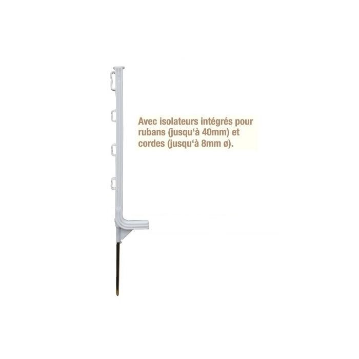 Piquet blanc plastique qualité hauteur 75cm avec 4 passe-fils, couleur blanc