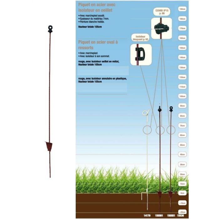 Piquet en fer ovale avec grand isolateur et marche pied soudé hauteur de 105cm carton de 25 piquets