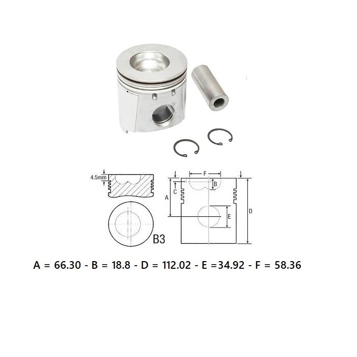 - 1 Piston à 3 segments diamètre 105.870 hauteur 112,02 chambre de combustion diamètre 58,36 profondeur 18.75 axe diamètre 34.93 mm ( pour segment épaisseur 3 mm / 2,35 mm / 3,35 mm )