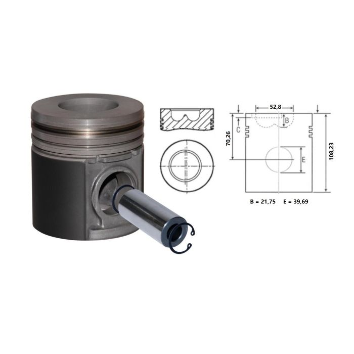 Piston STD 100.00 - hauteur de compression 70.26 mm - Hauteur de cavité 21.75, d 52.80mm - diamètre de l’axe 39,69 mm moteur Perkins 1004.40, 1004.40T, 1004.40TW, 1006.60, 1006.60T, 1006.60TW