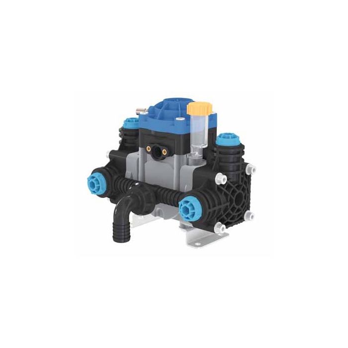 Pompe à pistons membranes basse pression à gros débit pour traitements de désherbage et épandage d'engrais liquide. Notamment indiqué pour emploi avec les solutions chimiques les plus difficiles.