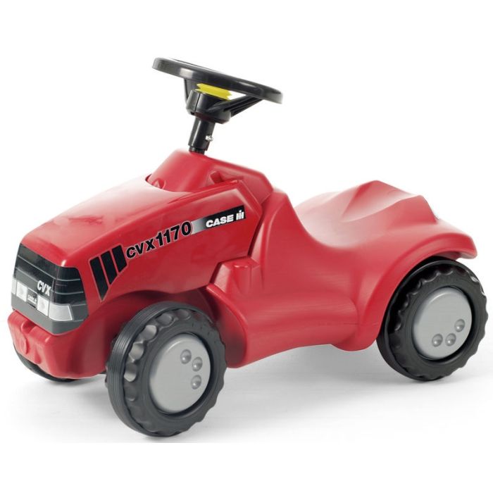 Porteur avec coffre sous le capot, klaxon, volant dirigeable. Le siège dispose d'un emplacement où l'enfant peut poser le genou et avancer avec l'autre jambe tout en gardant une parfaite stabilité. Tracteur sans pédale. Pneus silencieux