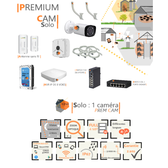 | PREMIUM' Cam Solo | : dispositif complet et polyvalent de vidéosurveillance : 1 Prem' Cam Visio Expert