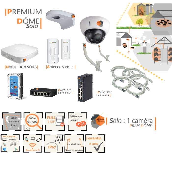 | PREMIUM' Dôme Solo | : dispositif complet et polyvalent de vidéosurveillance : 1 Prem'Dôme Visio Expert