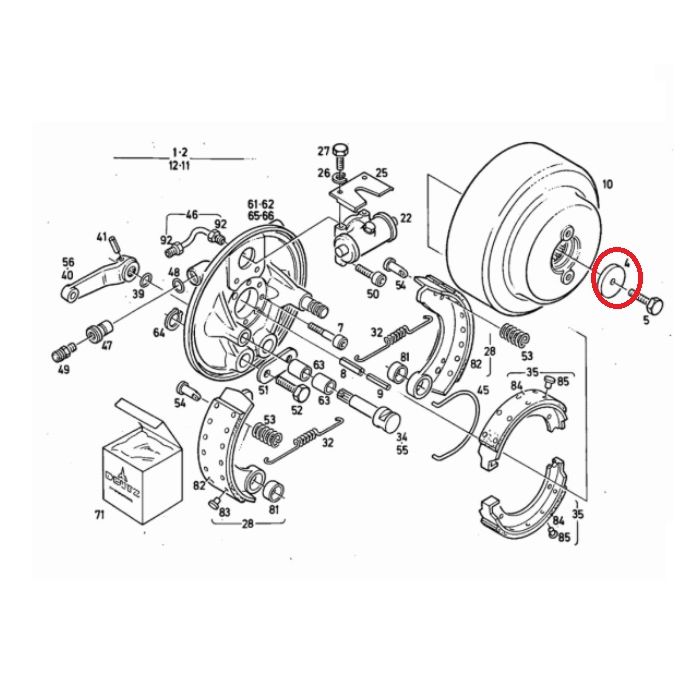Rondelle pour tambour de frein tracteur Deutz Fahr D6806, 7206, 7806, 6807, 7007, 7207, 7807, DX80, DX86, DXab 80, 86, 140, 145, DX3.70, DX3.90, DX4.10, DX4.30, DX4.50, DX6.10, DX6.30, DX6.50, AgroPrima 4.31, 4.51, 4.56, AgroXtra 4.47, 4.57, AgroStar 6.6