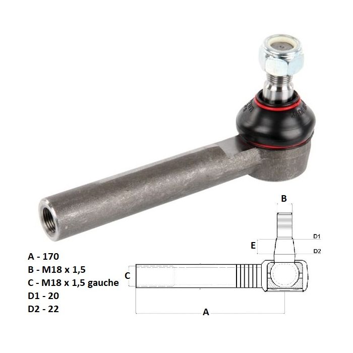 Rotule de direction tracteur Case IH 3210, 3220, 3230, 4210, 4220, 4230, 4240, C50, C60, C70, C80, C90, CX50, CX60, CX70, CX80, CX90, CX100, MX80, MX90, MX100