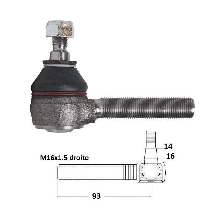 Rotule cône 14/16,5 filetage M16x1.5mm pas à droite, L93 mm