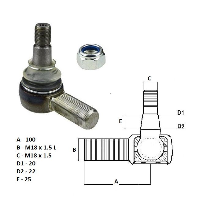 Rotule de direction tracteur Renault 782-4, 851-4, 95-14, 103-14, 103-54, 106-14, 106-54, 110-14, 110-54, 113-14, 120-14, 120-54, 133-14, 133-54, 145-14, 145-54, 155-54, 175-74, 160-94, 180-94