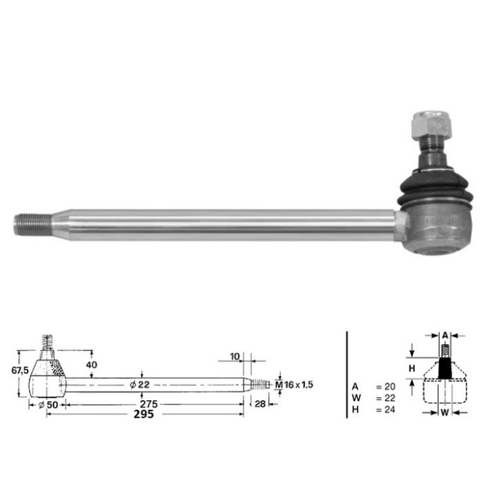 Rotule et tige de vérin de direction pour tracteur Lamborghini R 345, R 503, R 550, R 660, Same Centauro 70, Centurion 75, Condor 55, Falcon 50, Mercury 85, Minitaurus 60, Ranger 45, RowCrop, Solar, Taurus, Vigneron