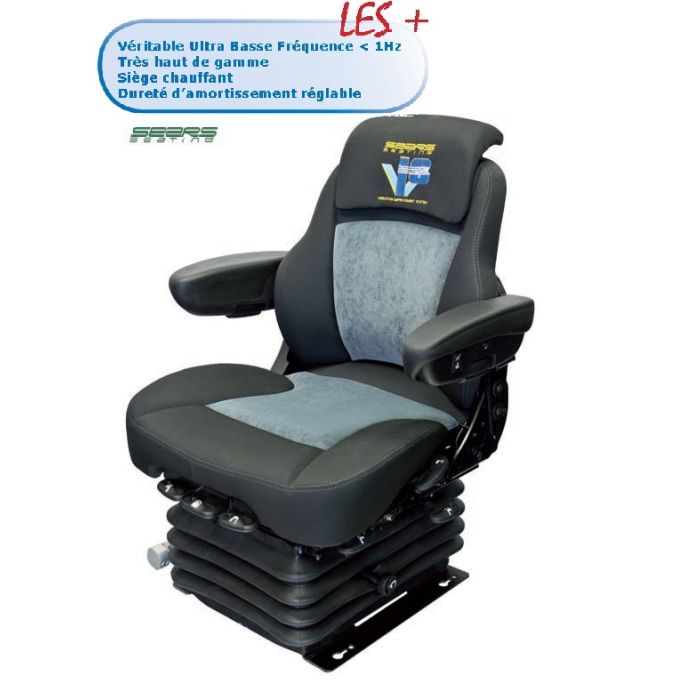 Siège à suspension pneumatique standard avec compresseur d'air 12 V et suspension ultra basse fréquence.
