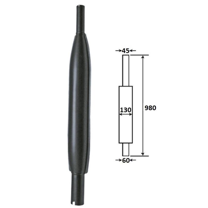 Silencieux vertical pour pipe diamètre 60 mm, longueur 980 mm, sortie diamètre 45 mm