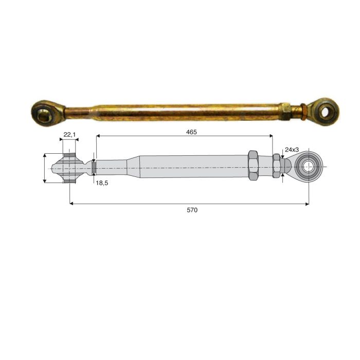 Stabilisateur rigide mécanique Ø 22.5 - longueur 570 / 685 mm - fut 465 mm - filetage 24x3 mm