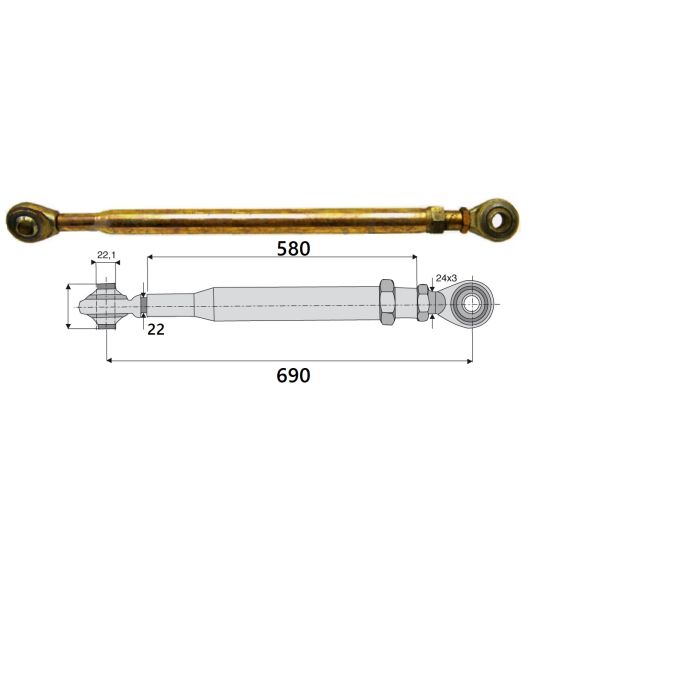 Stabilisateur rigide mécanique Ø 22.5 - longueur 690 / 805 mm - fut 580 mm - filetage 24x3 mm