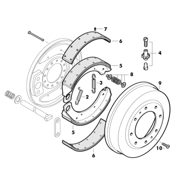 Tambour de frein tracteur Massey-Ferguson 35, 35X, 133, 135, 140, 148, 230, 240, 550, 835, TE20, TEA20, TED20, TEF20, Massey Harris MH50, tractopelle MF 20C, 20D