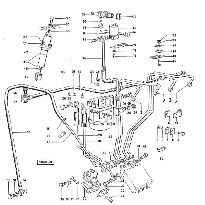 Tuyau d'injecteur N°1 moteur Same 1054P tracteur Centurion 75, Laser 85, Leopard 85, Mercury 85, Saturno 80 Lamborghini C754, C784, R784, R854