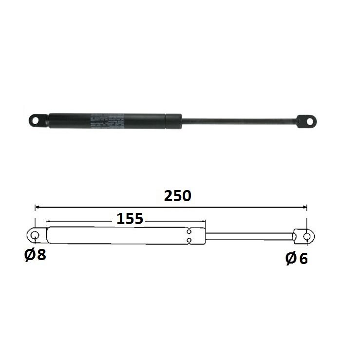 Vérin à gaz 2 chapes 250 mm, 180N