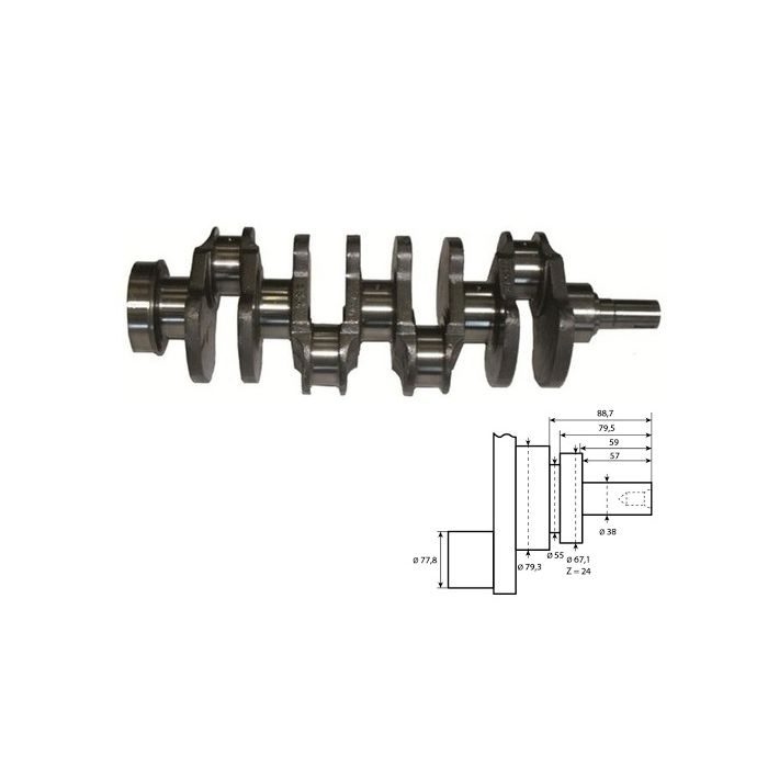 Vilebrequin forgé 79.35 moteur John-Deere 4045D, 4045T PowerTech, tracteur John-Deere 3300, 3300X, 3210, 3210X, 3310, 3310X, 6100, 6100SE, 6400, 6400SE, 6510, Renault Cérès, Arès