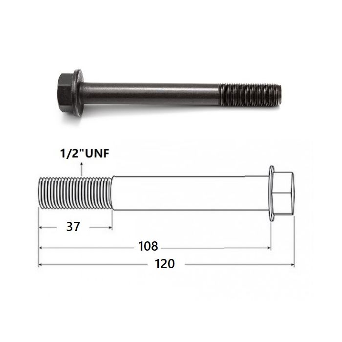 Vis de culasse 1/2UNF X 108 moteur Perkins 1004-4T AB, 1004-40T AK/AL, 1004-40TW, 1004-4 A / AA, 1004-42, T4.236, 4.41, 1004-40, 1004-40S, 1004G, 135Ti, T6.354, T6.3543, T6.3544, tracteur Massey-Fergsuon, Landini, McCormick, Hitachi, Linde