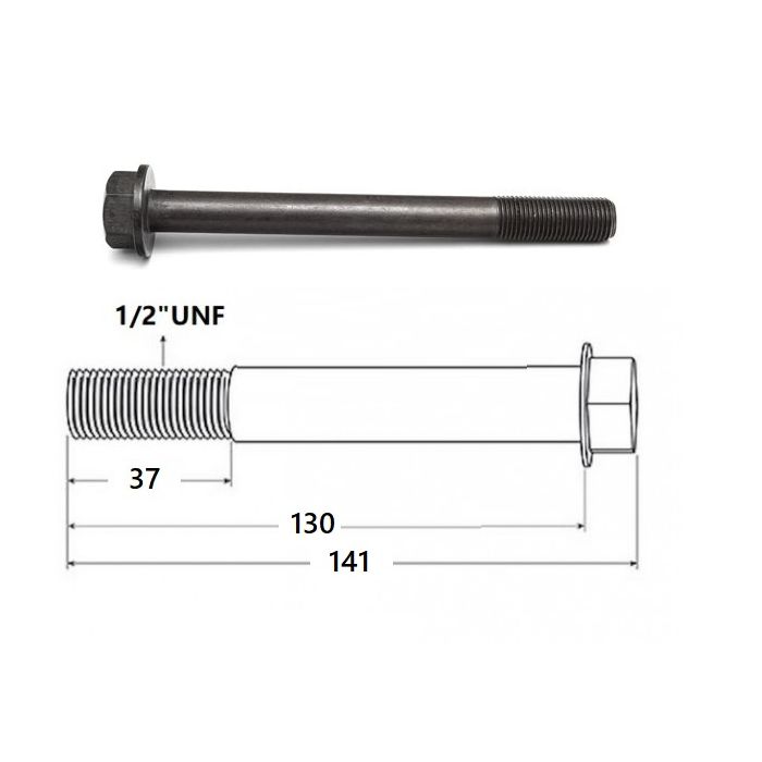 Vis de culasse 1/2UNF X 130 moteur Perkins 1004-40T, 1006-60T, 1004-40TW, 1006-60TW, 1006-6TW, 1004-4, 1004-4T, 1006-6T, 1006-60TA, T4.236, 4.41, 1004-40, 1006-60, 1004-40S, 1106C-E60TA, tracteur Massey-Fergsuon, Landini, McCormick, Hitachi, JCB