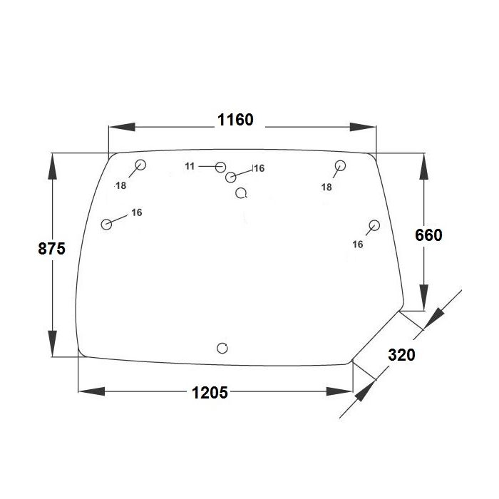 Vitre de hayon Arrière supérieure teintée pour Deutz-Fahr agrotron MK2, MK3, TTV et Profiline ancien modèle 8 trous.