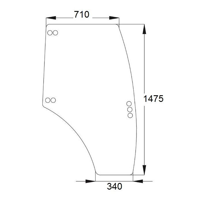 Vitre de porte Claas Nectis 217, 227, 237, 267 Bombée 7 trous.