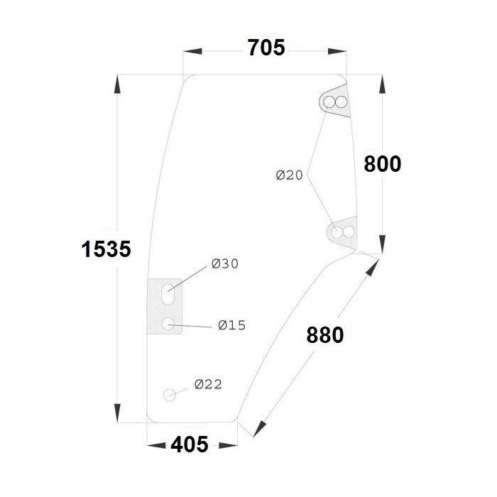 Vitre de porte New-Holland T, TS, TM, TLA,Case MXM, JX, JXU Fiatagri M.