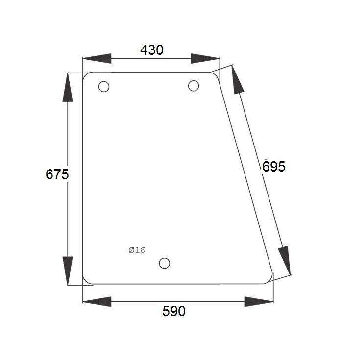 Vitre latérale gauche pour tracteur Case Maxxum série 5000.( 3 trous)